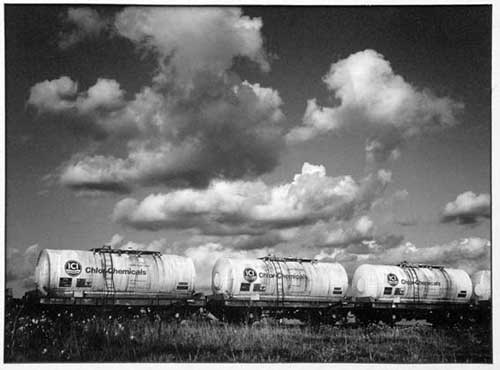The image of the railway wagons carrying a deadly cargo, - Caustic Soda Liquor, against the backdrop of this fantastic cloudscape is almost a total contradiction. On the one hand you have wagons that contain some very unpleasant material, offset against clouds that are reminiscent of majestic rural landscapes. And yet the two contradictory elements combine to form an extremely powerful image, - an image of drama and grace. |
