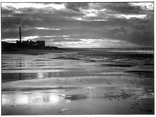 On the Headland at Hartlepool is a factory which takes in vast quantities of sea water, extracts various mineral salts, and then disgorges its effluent back into the North Sea. This would make an unpromising photographic subject in full daylight, but on a summer's evening, - with a magnificent skyscape behind, the factory becomes a satisfying element in the overall landscape. Even the pipeline used to import sea water, built out on a special pier, contributes to the overall visual scene. |