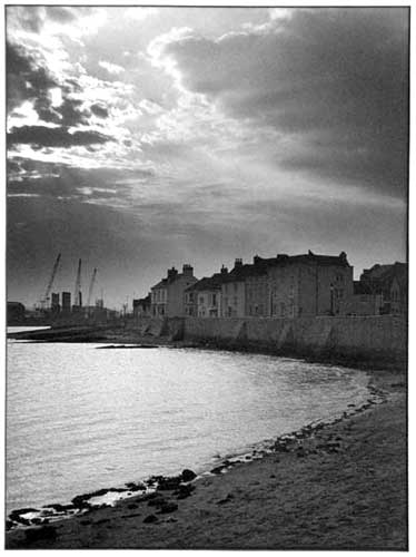 Hartlepool is a town associated with shipping, steel works, heavy industry, and the tale about the monkey on the beach. But the Old Town in Hartlepool is one area which goes back many years in history, and has fascinating historical connections. This view is of the houses near the fish quay, taken on a summer evening. Even here, however, the dockside cranes are not too far away. |
